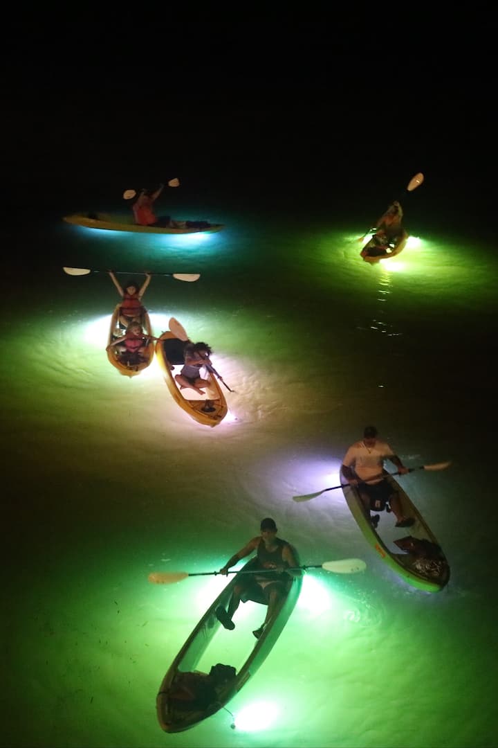 Feed baby fish and minnows and check out the underwater ecosystem illuminated at night with our glass bottom kayak led illuminated day & night tours.